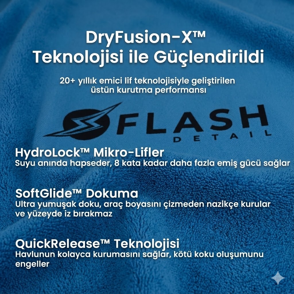 Flash Bez, binek araçlardan SUV'lara, motosikletlerden hafif ticari araçlara kadar her türlü araç tipi için idealdir. Ekstra büyük boyutu (70x90 cm) ve üstün emiş gücü sayesinde, en büyük araçları bile tek bir bezle, sıkmaya gerek kalmadan, tek seferde ve hızlıca kurulayabilirsiniz.